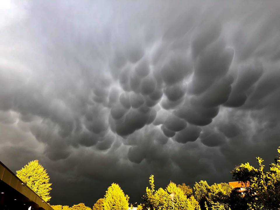 Maravillosas nubes mammatus, predicen la tormenta. Unusual mammatus clouds appear over germany. Mammatus sind beutelartige an der unterseite von wolken hängende ausformungen. 23april20183.974 aufrufeartikel versendengeoengineering, klimakontrolle, klimwandel, kontrolle, mammati, wasser. Deze foto gaat over mammatus, wolken.